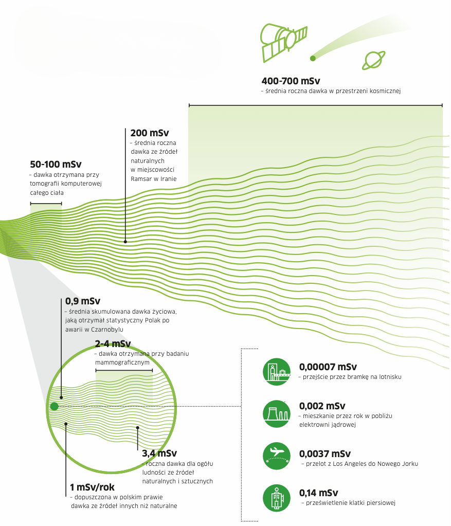 Aby lepiej zrozumieć skalę promieniowania, porównajmy dawki z różnych źródeł w naszym codziennym życiu z tymi z elektrowni jądrowych.